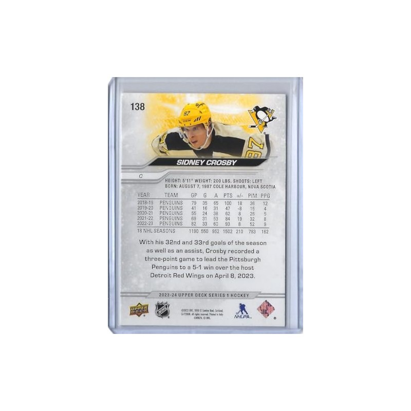 - 2023-24 Upper Deck Hockey #138 Sidney Crosby Hockey Card Pittsburgh