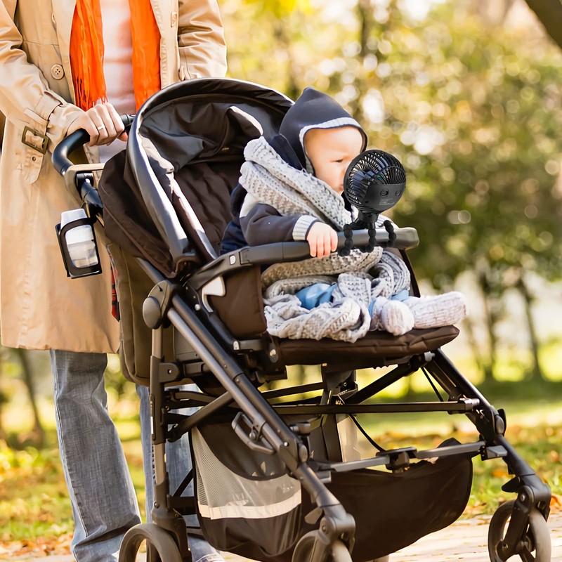 - 【Ideal Summer Necessities】The Flexible Tripod Can be Easily Folded Into a Backpack to Meet The Needs of Different Occasions. You Can Clip The Fan to The Baby's Stroller, Crib, for Your Golf Cart, Car Seat, Tent, or Anywhere You Like.