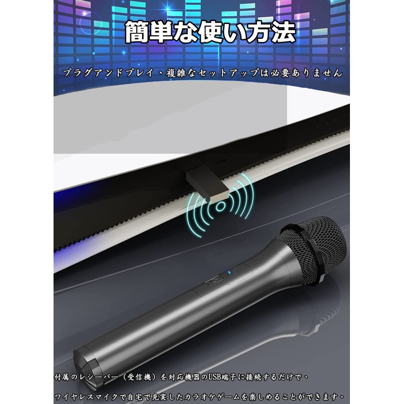 - ♫【Easy to Setup】Plug and play, no complicated setup required. Simply connect the included receiver (receiver) to the USB terminal of the compatible device, and you can enjoy a rich karaoke game at home with the microphone. The switch microphone has an ON/OFF switch, and the one-button design makes it easy for anyone to use. When not in use for a short time, press the power button to change to muting mode. Press the power button again to unlock the muting mode