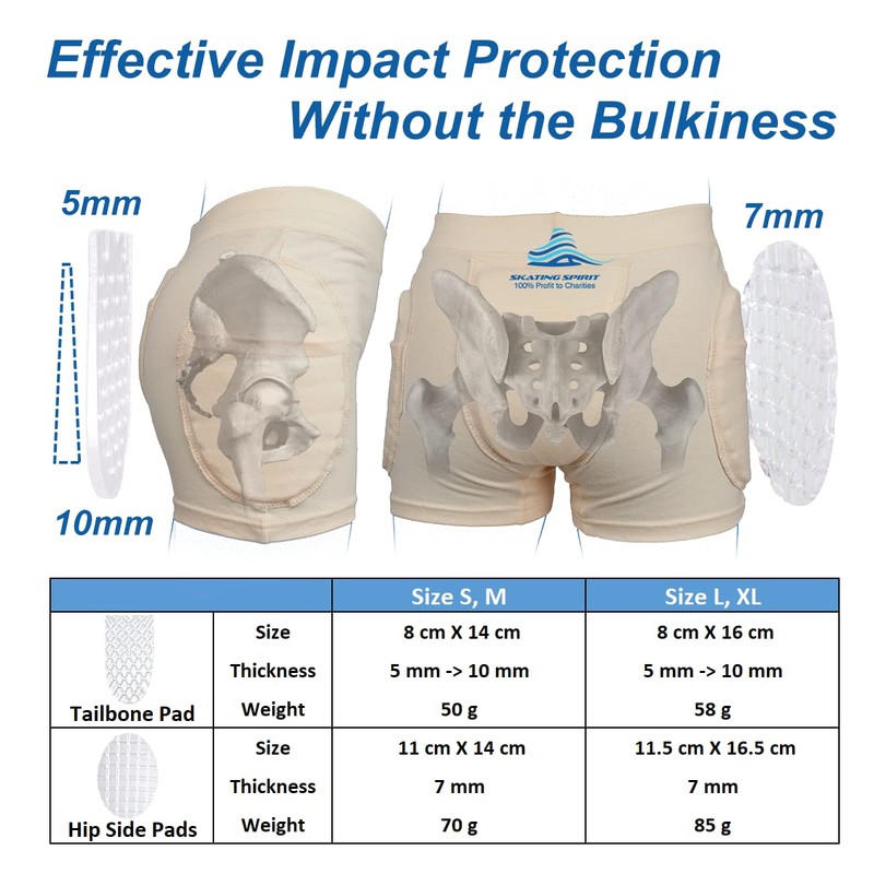 - 【Skate with confidence】The protective underwear is equipped with 3 silicone pads, providing the same impact protection as the regular EVA foam butt pad but without the bulkiness. It can be worn invisibly under training pants to provide cushion for hips and tailbones while maintaining a slim silhouette.