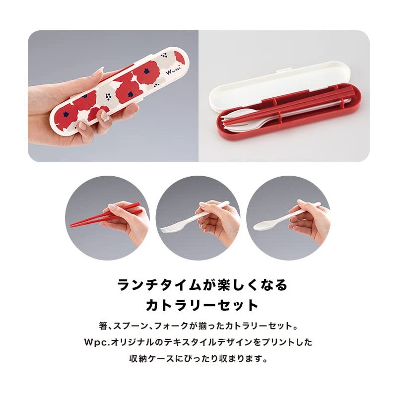 - Cutlery set with chopsticks, spoon, and fork Fits perfectly in the storage case printed with an original Wpc