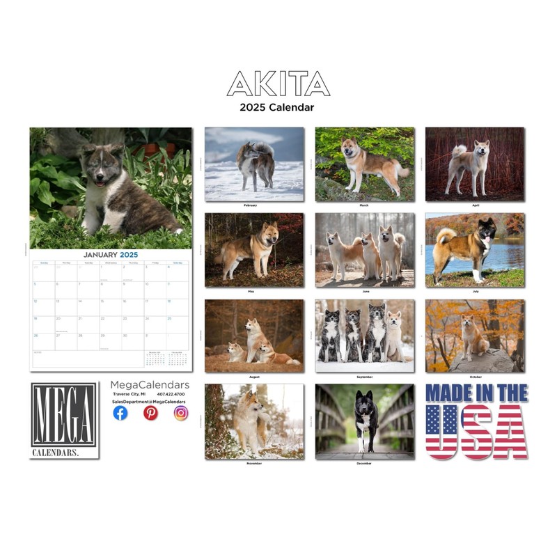 - The original Akita dog breed calendar! MADE IN THE USA WITH PROFESSIONAL CONTENT DESIGN AND PHOTOGRAPHY - Featuring the best Akita photographers on the planet. Each of the monthly pages contains past and future referencing dates to plan and track your monthly goals + Bonus months calendar for your long-term strategy and planning.