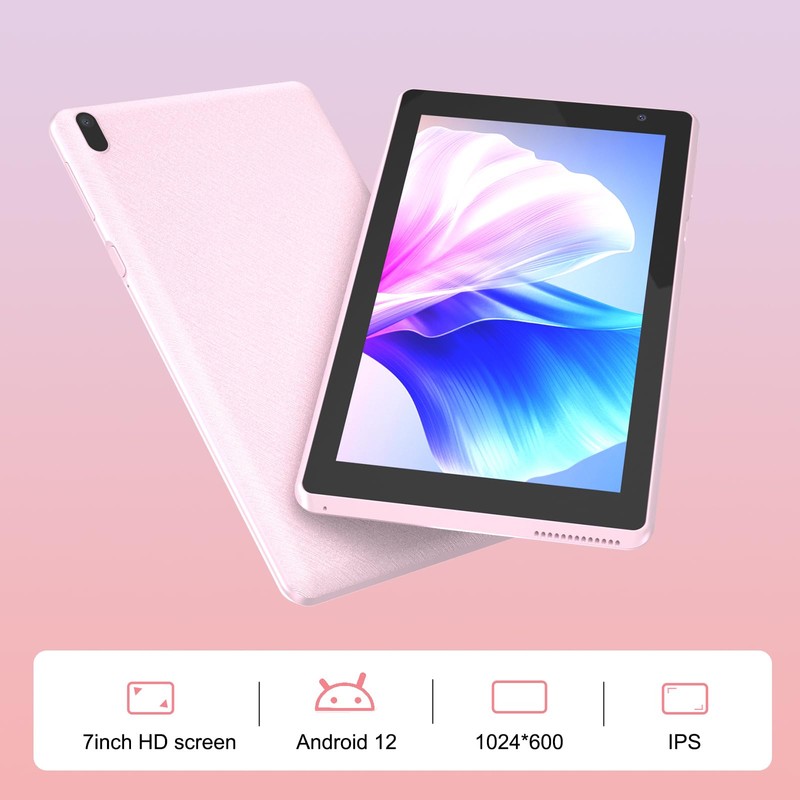 - 【7" Screen + Eye Protection】 The android 12 tablet has a 7-inch high-definition screen. IPS eye protection HD touch screen. The screen is designed to reduce glare and provide greater clarity and brightness. It protects your eyes by reducing the damage caused by blue light, making tablet use safer and more comfortable.