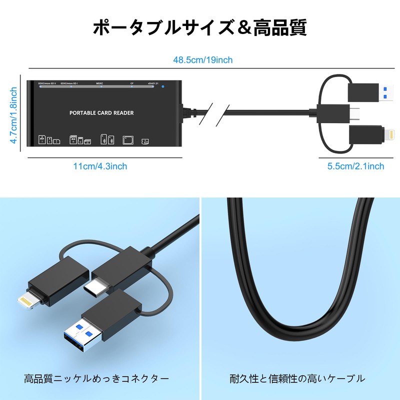 - ✅【Wide Compatibility】This sd card reader supports all devices with USB C, Lightning and USB A interface, supports standard photo formats, JPER, RAW, SD and HD video formats. Compatible with Laptop with OTG Function iPhone 15/15 pro/15 pro Max/14/14 pro/14 pro Max/13/13 Mini/13 pro/13 pro Max/12/12 Mini/12 pro/12 pro Max/11 pro/11, MacBook, Mac-Book Pro, ChromeBook, Dell XPS, Android Smartphones i-Pad Pro, Sony XPERIA, Galaxy, Google Pixel and more devices Support Mac OS, IOS, Android, Windows and other systems, one memory card reader can meet all your transfer needs