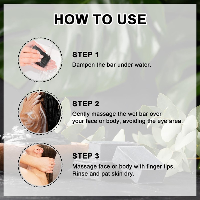 - 【How To Use】Dampen the bar under warm water. Gently massage the wet bar over your face or body, avoiding the eye area. Massage face or body with fingertips. Rinse and pat skin dry. Use Twice Daily, Morning And Night