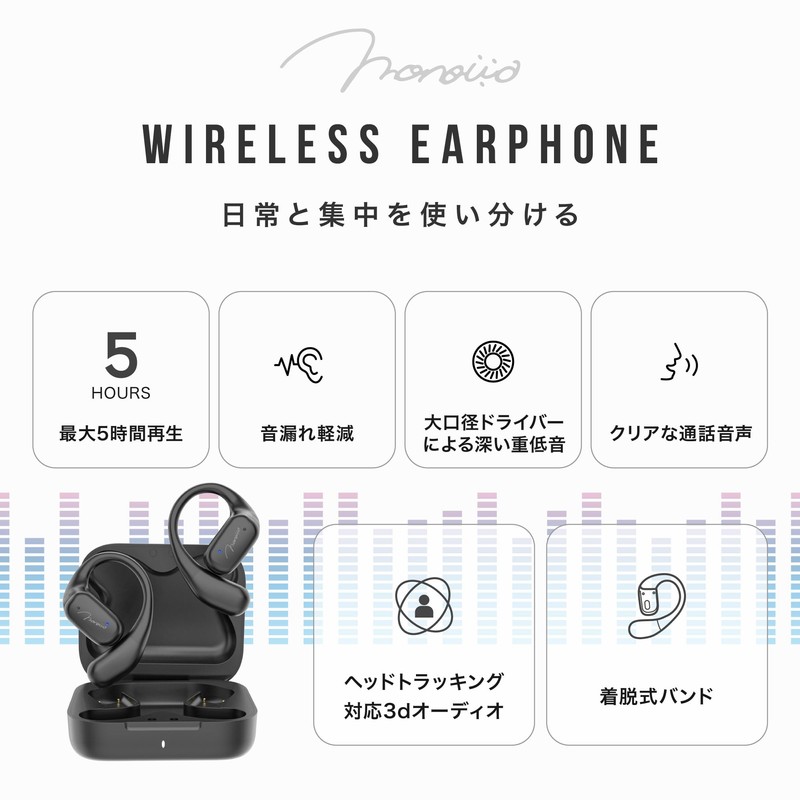 - A new common idea for earbud experiences: You can always hear the sound around you, so you can use it safely while doing housework, running, or conversation. In addition, it reduces fatigue and stuffiness that are unique to the earphones, providing a comfortable fit