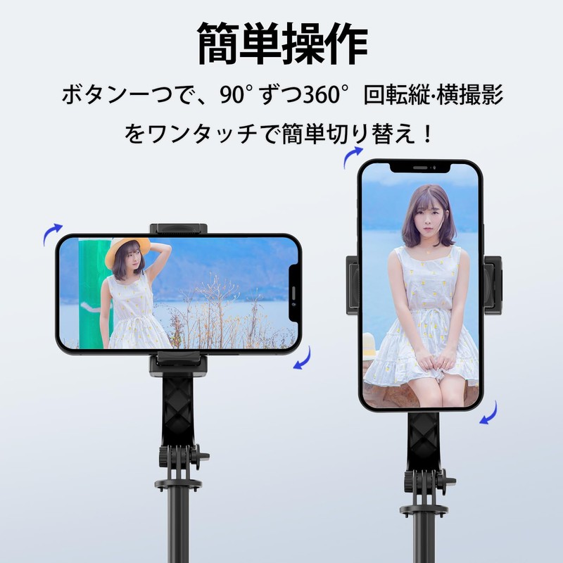 • [Stabilizer function for video shooting without shaking] If you want to take videos while walking, it will definitely be a blurring when you want to take videos with you. To solve this problem, we have developed the latest design of the motor and added stabilizer function inside the punchlet. It automatically balances and stabilizes camera shake and sway while walking, and captures moving subjects, making it easy to capture high-quality videos and selfies. 360° rotatable holder allows you to position your smartphone horizontally or vertically, making it easy to capture the perfect shot. Comes with a Japanese instruction manual (English language not guaranteed) and is easy to use even for beginners