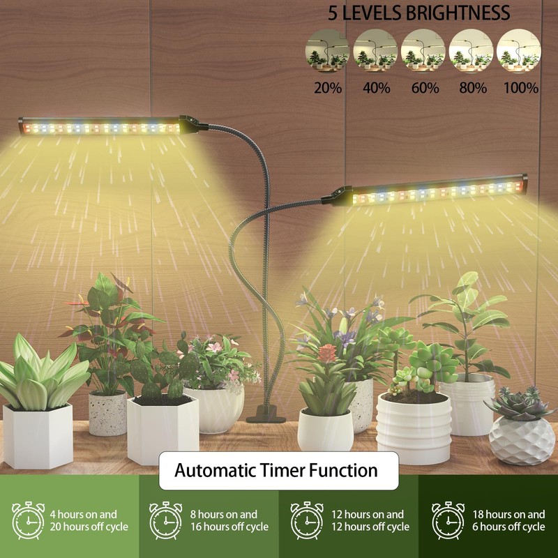 • 【Auto On/Off Timing Function】With the built-in 4/8/12/18H timer, you can easily set any lighting schedule. The clamp grow lamp can be set to automatically turn on and off at specific times every day, promoting consistent plant growth. With 5 adjustable brightness levels, you can customize the seedling light intensity to suit different plant growth stages.