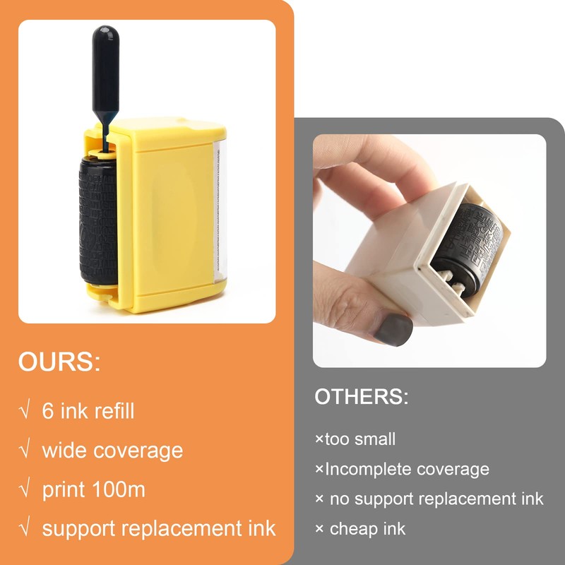 - Facile à utiliser et portable: Mini tampons à rouleau faciles à transporter et à utiliser, prennent en charge la répétition du carburant et l'impression à 100 m, mettant fin aux violations de la vie privée.