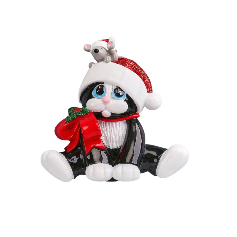 2024 Personalized Christmas Tree Ornaments for Pets - Black Kitty with Mouse Customized Christmas Cat Ornament - Keepsake for Kitty Cat Lovers-Free Customization