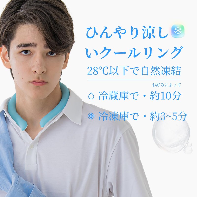 - Your ring will stay cool even in the hot midsummer season! Neck cooler made from the mysterious "PCM material" ice that freezes in spaces below 8.0°F (28°C). Effectively cools the neck cervical artery at a comfortable temperature, so it is also recommended for heatstroke. It does not overly cold like ice, so you don't have to worry about cold disruptions and is gentle on your skin. Even once melt, you can leave it in a cool space with air conditioner and you can reuse it again and again. You can fill it in the freezer or soak it in the tap water for quicker freezing so you can take it on a sudden trip. Designed to fit around the neck and not easy to fall off. It can be used for a variety of occasions, such as those who are active in sports, working outdoors, commuting to work or school, fishing, doing housework, concerned about hot flashing, doing activities in spaces without coolers, taking a bath or changing the mood