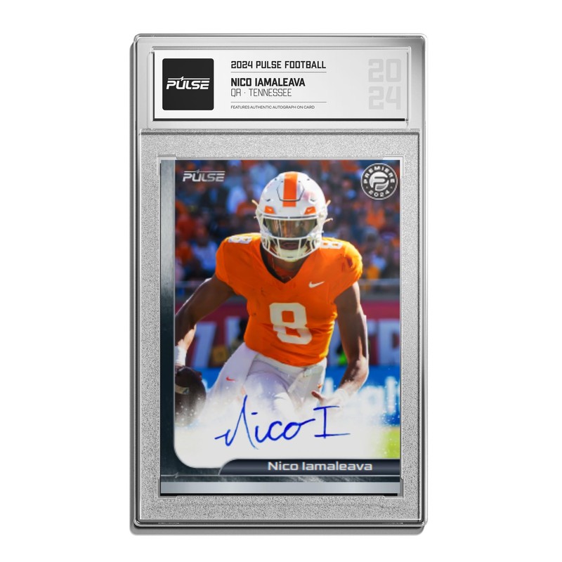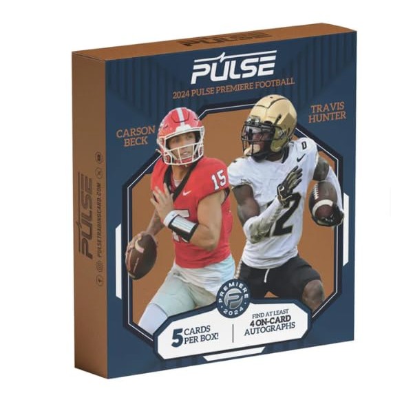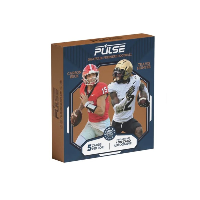 Pulse Trading Cards is excited to announce the debut of Pulse Football! 2024 Pulse Premiere Football features autographs from some of the game's brightest future stars. Every box delivers at least four ON - CARD Autographs. Look for future top picks like Carson Beck, Nico Iamaleava, Travis Hunter and more! Find low-numbered on-card autographs of top prospects. HOBBY EXCLUSIVES: Look for the stunning Graffiti autograph parallel #'d/7 and Black #'d/1. Find hot boxes that contain additional autographs!