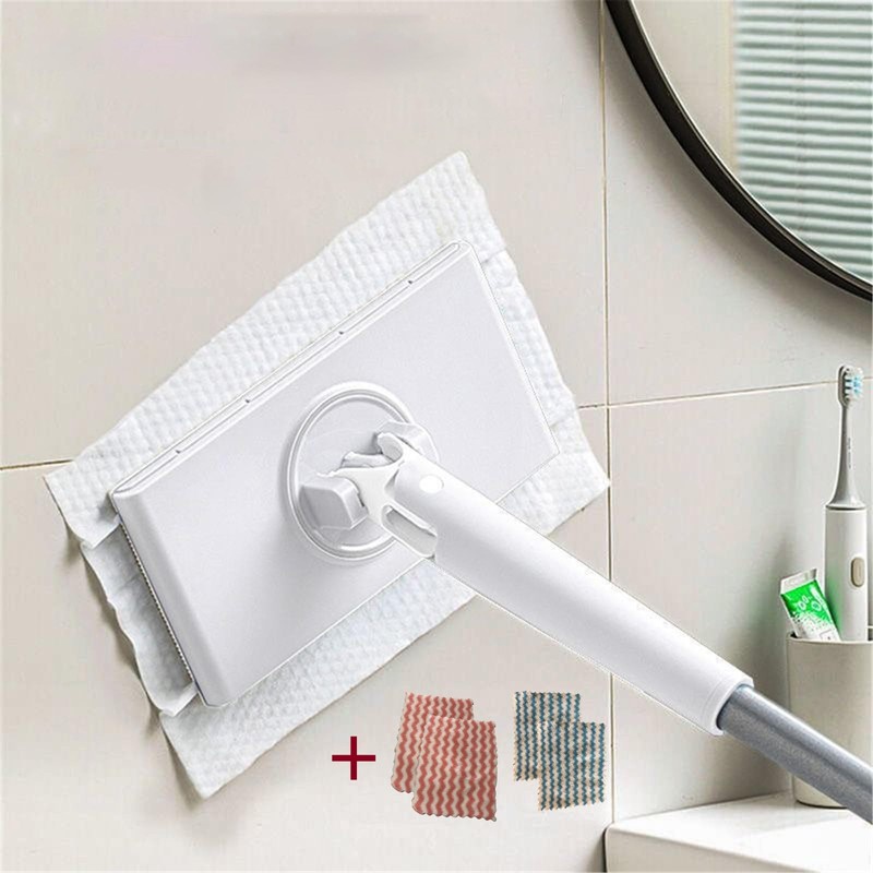 2024 Upgraded Hands Mini Mop Automatic Cloth Changing with 4Pcs Cleaning Cloth Mini Mop Portable Mop Household Cleaning Tools for Bathroom Kitchens Tableware Desktop (White 71CM)