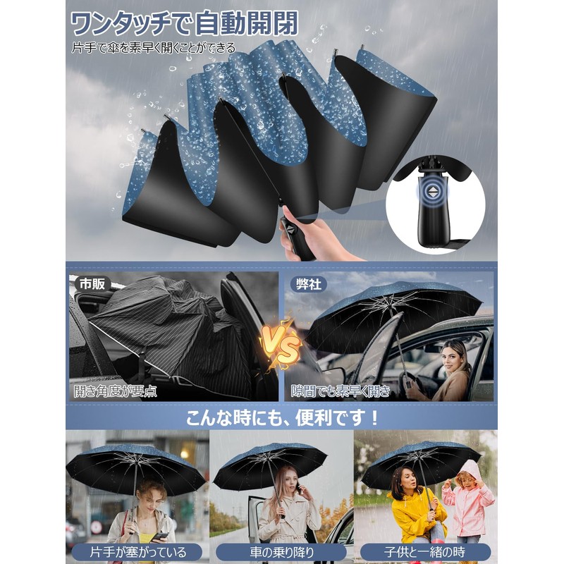 - 急な雨でも対応できる【片手で楽々ワンタッチ自動開閉折りたたみ傘】☂✅ 業界最新な技術を採用されています、ボタンを押すだけで傘を開いたり閉じたりできます。片手でも簡単に開閉できます。傘を閉じる時に撥ねてくる雨粒で袖が濡れる気まずさにさようなら!突然雨が降り出したけど、傘を開くのに手間取り濡れてしまったという経験がある人も多いのではないでしょうか。ワンタッチ自動開閉式なので、スピーディに開けられます。雨の日の車の乗り降り、子供を抱きかかえている時や荷物の多いときも楽です。外回りの仕事、突然の夕立にもサッと広げる事が出来、いつでも安心しています。(ご注意:密封することにより少し折りたたみ傘特有のニオイがありますが、健康に影響はございませんので、安心してご使用ください。ニオイが気になる場合は風通しの良い場所に1、2日置いておくとニオイも気にならなくなります。)