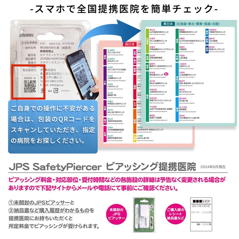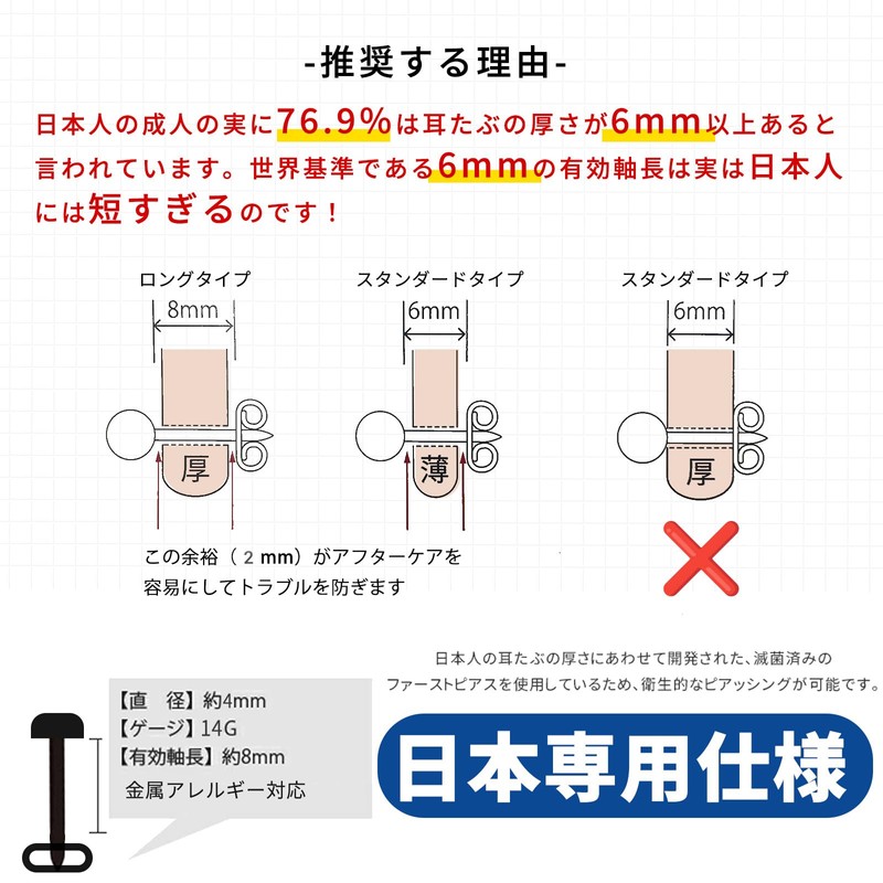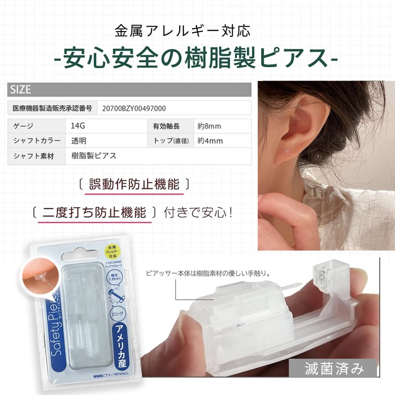- 簡単・安全にピアスの穴があけられる、滅菌済ピアス穿孔器 耳たぶセーフティピアッサー 医療用のポリカーボネート製ピアスを使用していますので、ご安心ください。