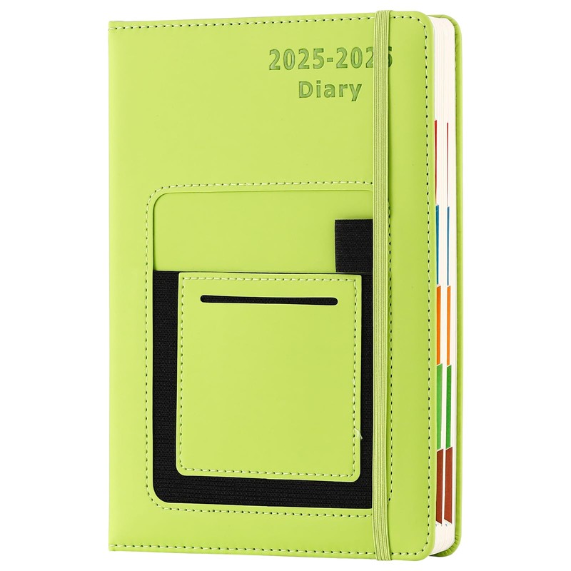- FUNCTIONAL DETAILS Hardcover journal that not only looks and feels luxurious, but also provides protection for your writing. Colorful monthly tabs for quick check, front and back pocket that can hold some cards, elastic closure band to keep the 2025-2026 diary closed. Pen holder for most types of pens. Bookmark so you can quickly find your place.