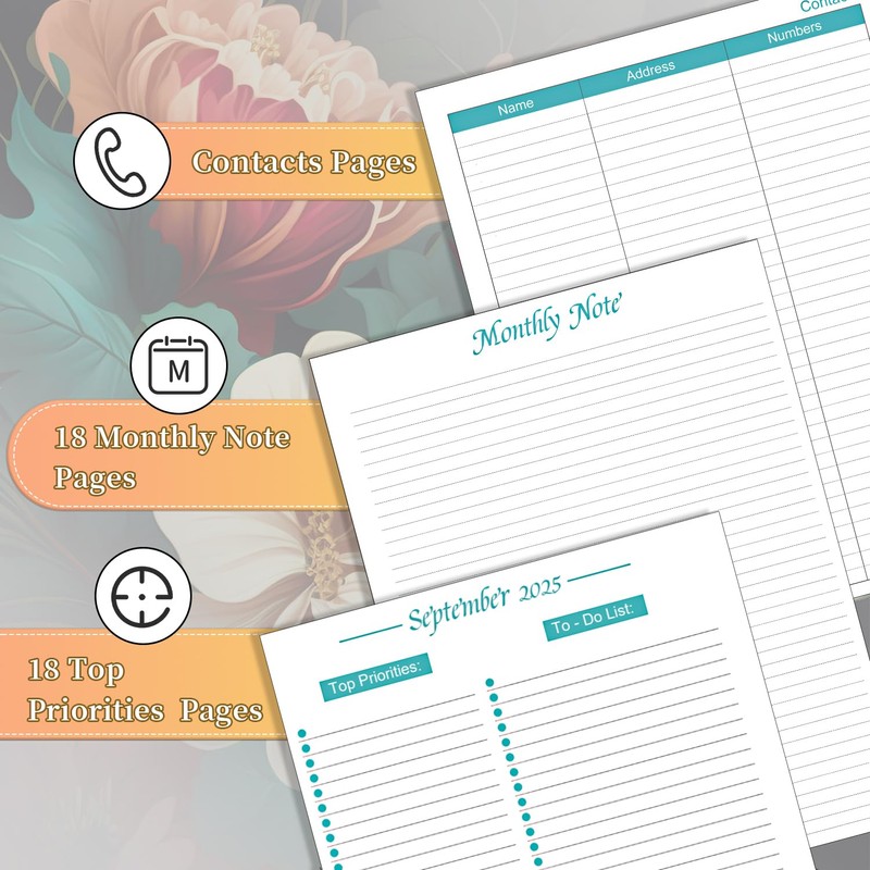 - Monthly Agenda 2025-2026 - Monthly To Do List & Monthly Note: The agenda monthly planner contains 18 monthly to do list pages and 18 monthly pages. The monthly to do list pages provides top priorities section, important dates section and to do list section for jotting down your schedule, keeping track of your focus. The monthly note page provides ample lined writing space for writing down your notes