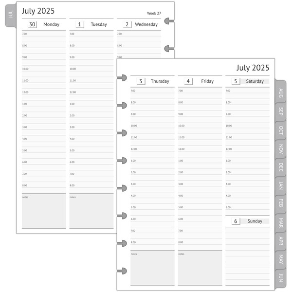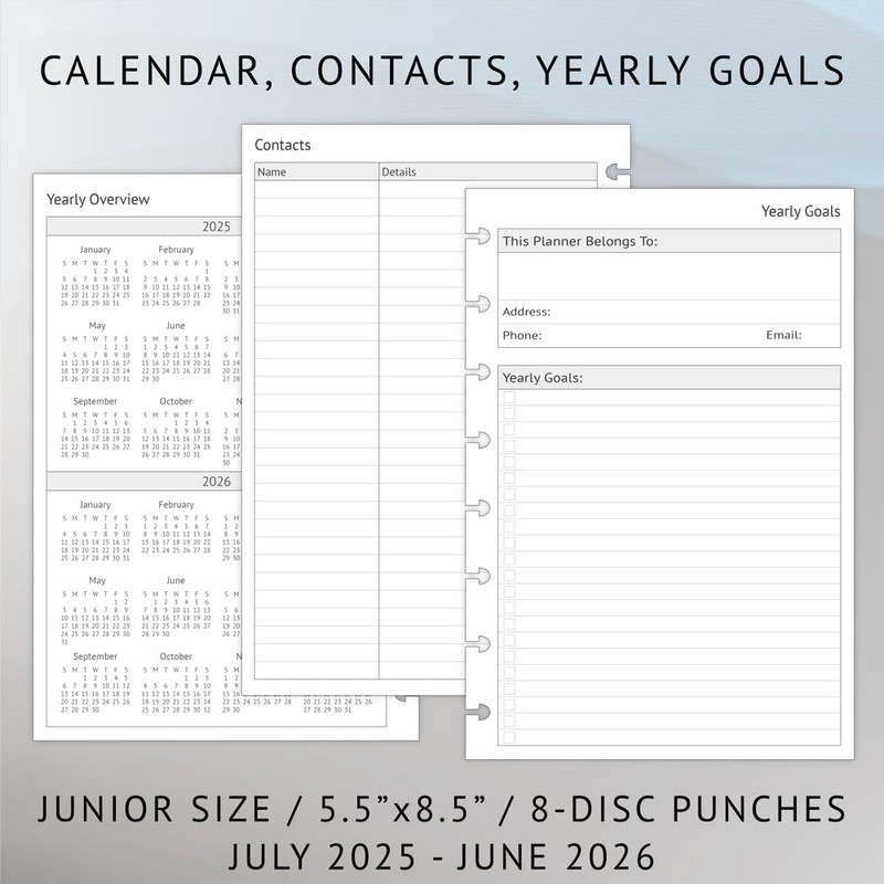 - 8-disc punched planner refills compatible with TUL, Staples Arc, Levenger junior size discbound planners. Jul 2025 - Jun 2026