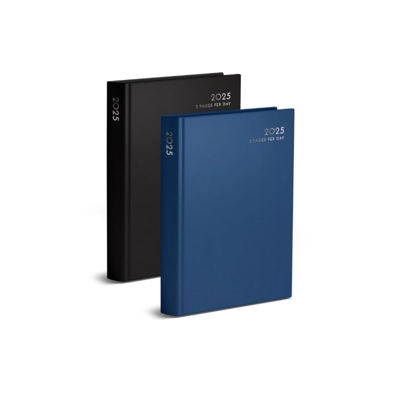 2025 A5 Hardcover 2 Pages Per Day Diary Classic Planner Appointment Office Desk Diaries Dairy (Black)