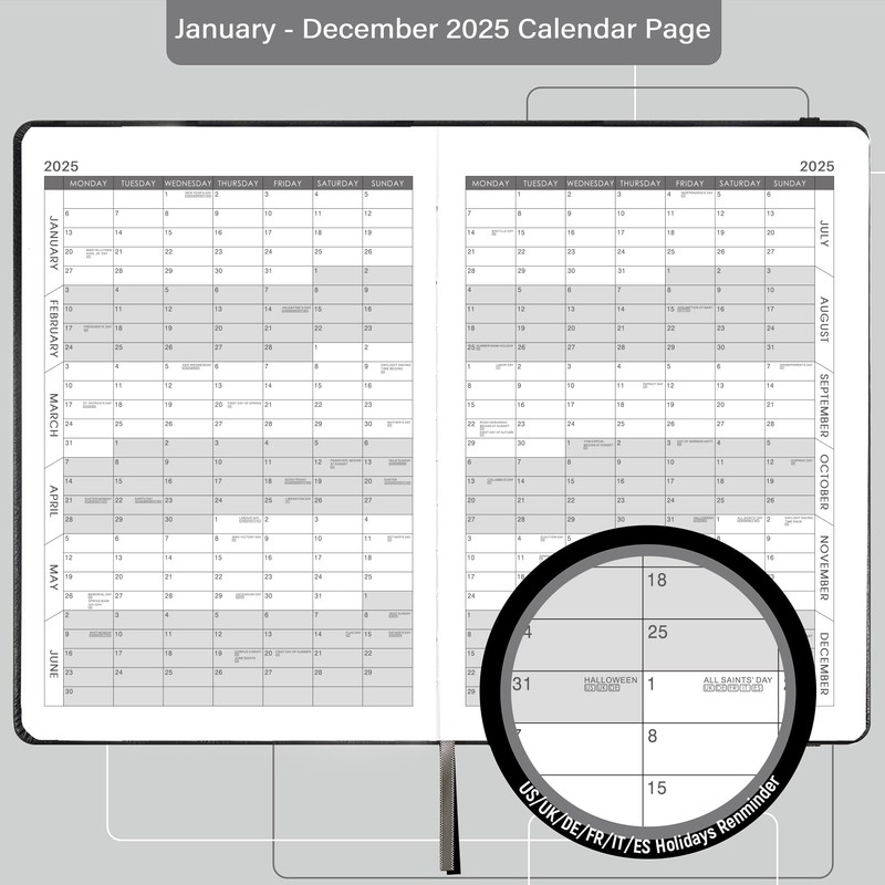 - 💻FUNCTIONAL - 180° Flat Open丨Premium Thick Paper丨Inner Pocket丨12 Months Monthly Tabs丨Pen loop丨2 Bookmarkers丨Elastic Banded丨High Quality Cover丨Perfect A5 Size丨Reference Holidays