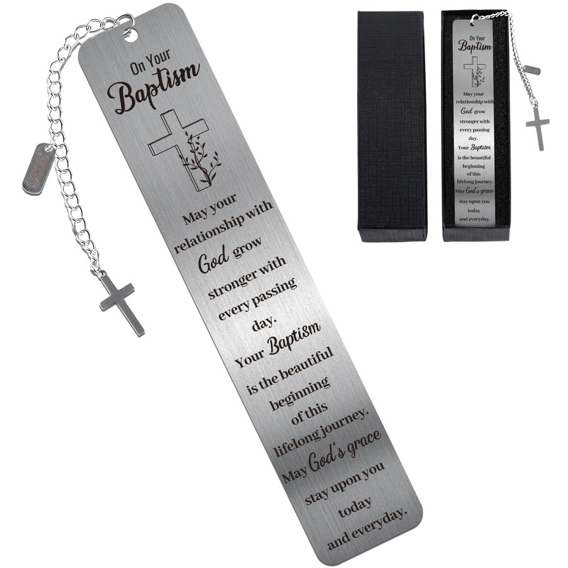2025 Baptism Gift Bookmark: Inspiring Christian Metal Book Mark, Bible Verse Book Markers, Confirmation Gifts for Teen Girls Boys Baby Shower Church Sunday School with Cross Pendant Gift Box