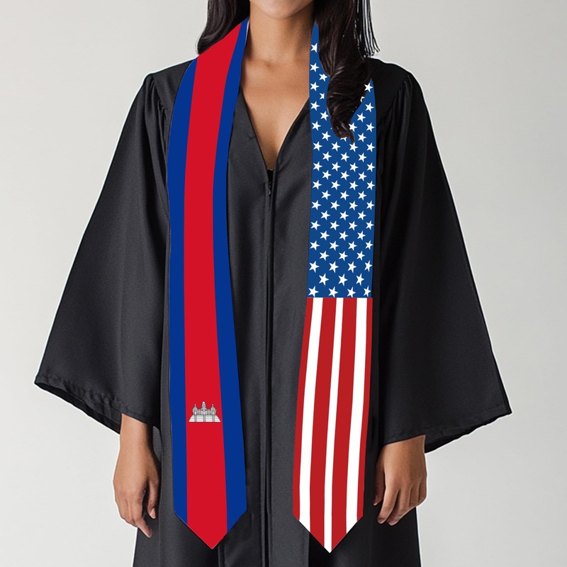 2025 Cambodia Flag and USA Flag Graduation Stole Graduation Sash Class of 2025 Graduation Scarf for International Student (Baccalaureate Gown and Hat Not Included)