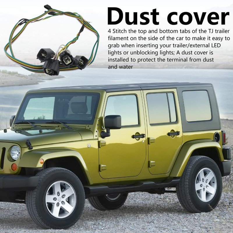 - Tow Hitch Wiring For Jeep TJ:This 4-pin for custom TJ trailer wiring harness kit is designed for 1998-2006 Jeep Wrangler TJ (include for Sahara, for Unlimited Sport Edition, and for Rubicon) Cable Length: 200-208cm (81 Inches maximum)