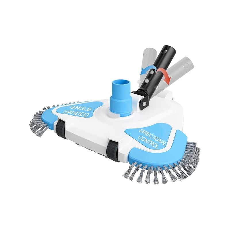 2025 Enhanced TidyMister Pool Vacuum Head with Wheels,Steering Handle Swimming Pool Vac with Side Brush & Rotatable Hose Adapter(Safe for Vinyl Liner) for Inground & Above Ground Pools - Triangle