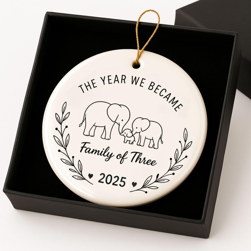 - đQuantity: Youâll receive one precious âThe Year We Became Family of Three in 2025â Christmas ornament. This single 3" ornament is a unique âBaby's First Christmas Keepsake,â designed to mark the special moment when your family grew. Itâs a wonderful way to celebrate your new family of three and create lasting memories during the holiday season.