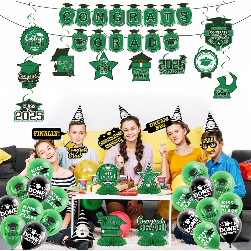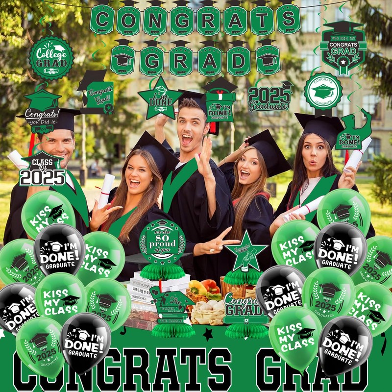- 【Wide Applicability】Our 2025 graduation party decorations set is suit for kindergarten, primary, junior, senior, undergraduate, graduate, or graduation party. Balloons, banners, honeycomb table toppers, backdrops, hanging ornaments, it’s perfect for creating unforgettable atmosphere at your graduation party.
