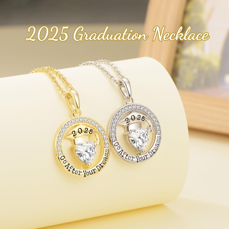 - 🎓Graduation Necklace Class of 2025 🎓It engraved with sentimental words"Go After Your Dreams" that always reminder you to reach for your goals,and realize the dreams.This Sterling Silver gold coin necklace combines the sparkling heart shaped gemstone with a Bachelor of hat customized "2025"design,simple and unique.This is a special personalized graduation gift for her that can be cherished for the whole life.