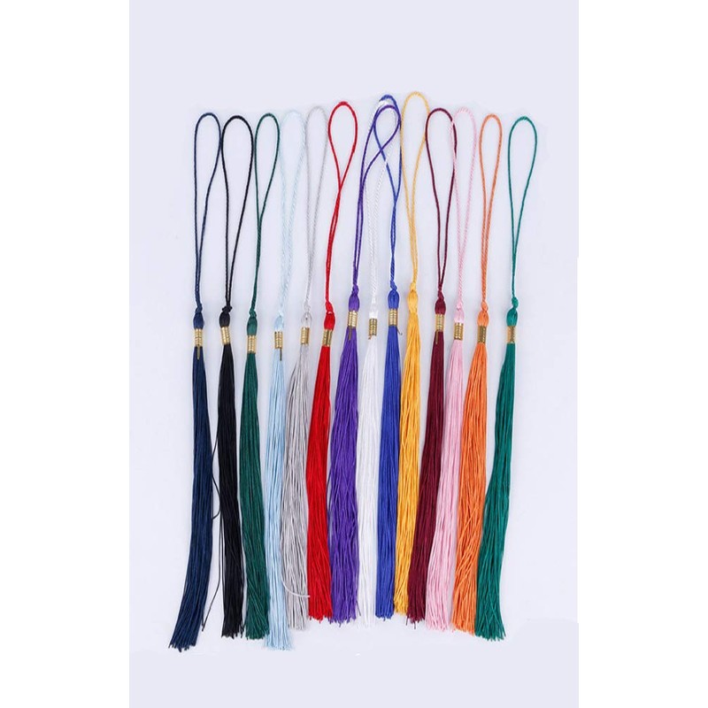 - Overall length(15 inches),9” long rayon tassel with 6” long hang loop, easy removable year charm of gold zinc, It can match graduation caps for both adults and children. the tassel length can be trimmed by yourself.