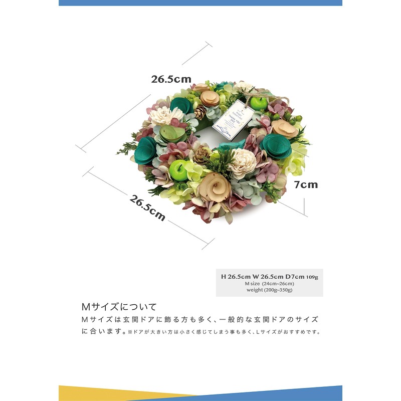 • 家族みんなを玄関から笑顔に - - - リースを飾る場所は玄関ドアやお部屋の壁、スタンドを使ってテーブルの上などに飾れます。飾る場所に決まりはありません。 リースの劣化や湿気等を考えるとお部屋の中に飾る事をおすすめします。