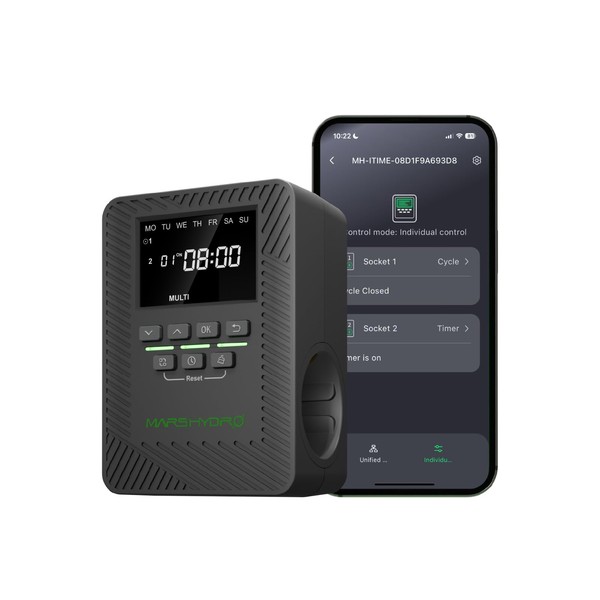 2025 MARS Hydro ITime 2-in-1 Smart Socket Double Socket App Control Individually Programmable 12 On/Off Switches UL Listed Robust Plug-in Socket Timer