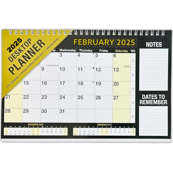 2025 Month to View Desktop Planner Calendar for Home Office and School Use Black & White