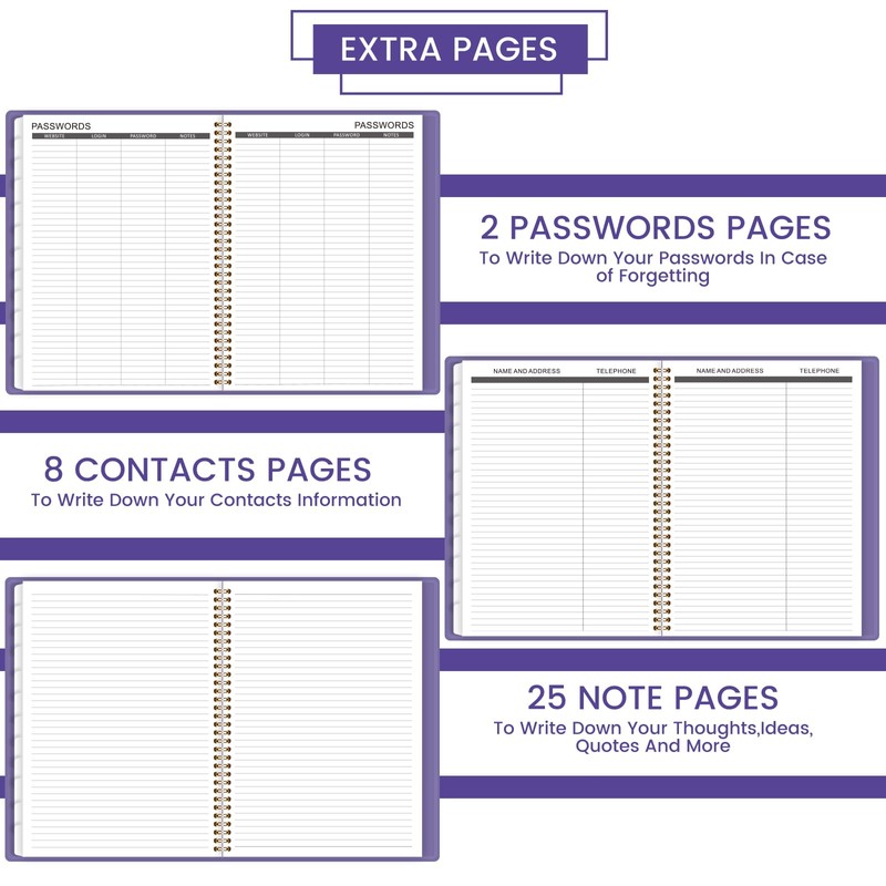 - ☪ AMAZING ORGANIZATION - Highlighted federal holidays to remind you of every important holiday. 3 - years overview calendar for a long - term planning. 15 ruled note pages can jot down your thoughts, ideas, quotes and more. Manage your key contacts on the telephone/address pages. Double-sided inner pocket can store your loose items.