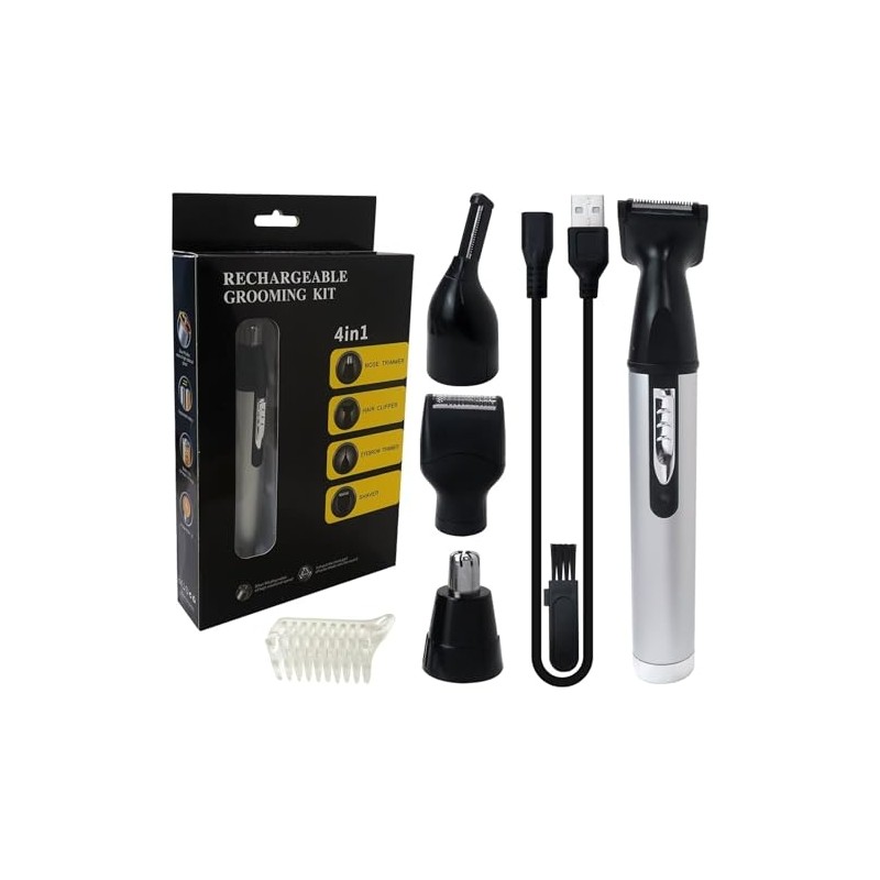 2025 New 4 in 1 Rechargeable Eyebrow Ear Nose Beard Trimmer Set Hair Clipper Shaver Mute Noise Reduction System Comfortable and Quiet Facial Hair Grooming Kit for Men Women