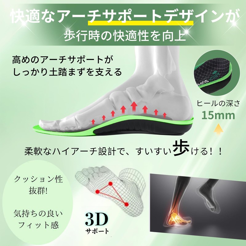 - 3-Point Support Design Thoroughly Considering Foot Pressure: This insole effectively disperses foot pressure by its structure such as the "center convex processing", the forefoot area of approximately 0.2 inches (0.5 cm), and the heel of approximately 0.4 inches (1 cm). Provides comfortable support for nurses, teachers, workers, sales workers and anyone on their feet for a long time standing or when golfing