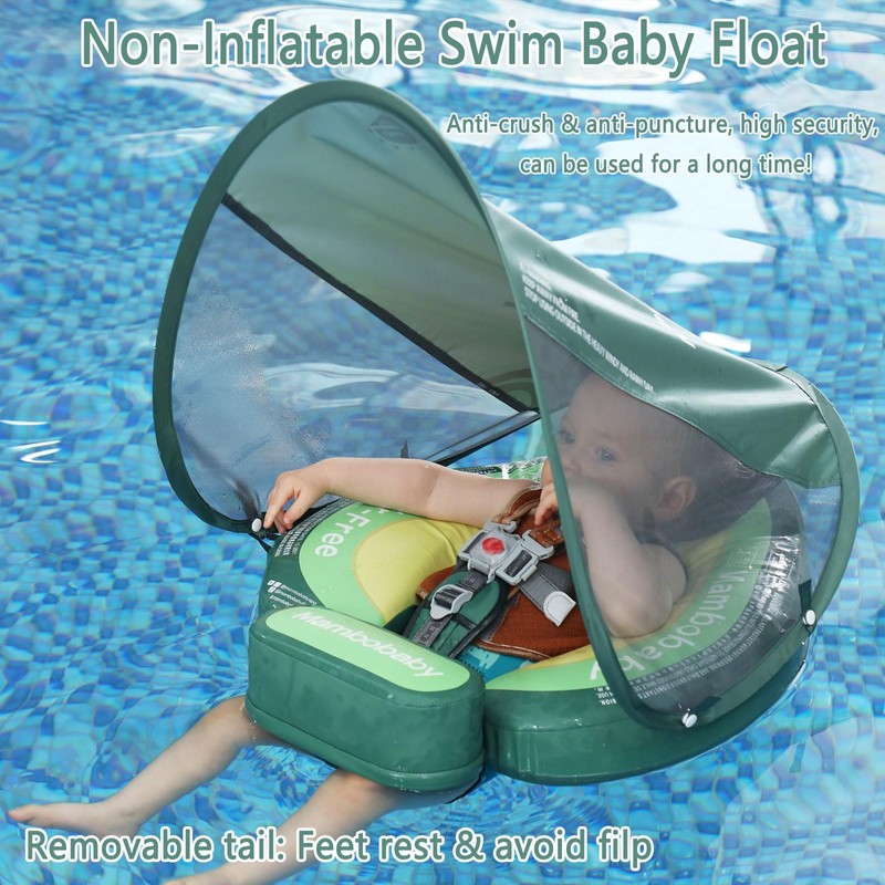 Upgread Mambobaby Float with UPF 50+ Sun Protection Canopy Big Buoyancy Non-Inflatable Solid Baby Swim Pool Float for Ages 3-24 Months (Avocado Green)