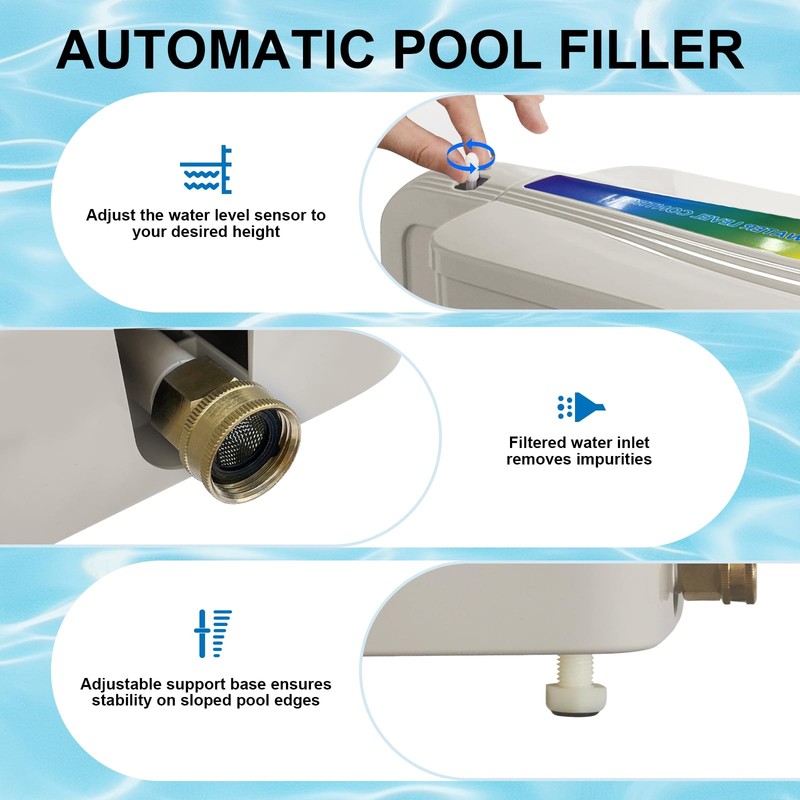 - Wide Compatibility - Ideal for pools, spas, and fountains, the LC-3001automaitc pool filler maintains the perfect water level to prevent pump damage from low water. Simply connect it to a garden hose—no tools, no power, just effortless water level control.