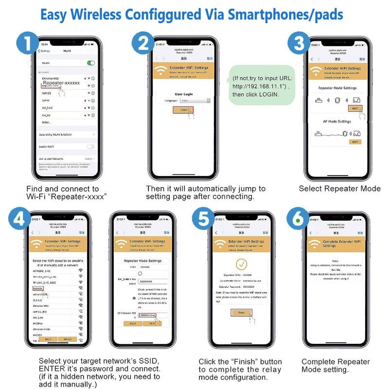 This Wi-Fi signal booster can easily expand the wireless coverage by press the WPS button on your original router and this repeater, only takes a few seconds. Very easy to set up.
