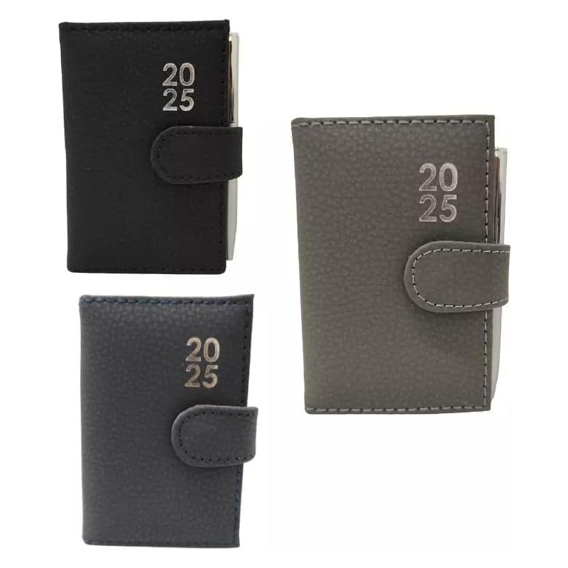 - Packed with lots of features. Includes a faux leather soft touch wrap around cover, silver foil stamped with 2025, push closing clip.
