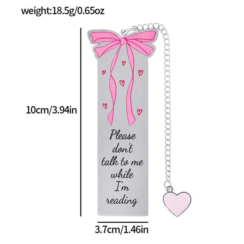 2025 Pink Bow Bookmark for Women, Stainless Steel Bookmark with Heart Charm Please Don’t Talk to Me While I’m Reading, Reading Accessories for Girls Book Lovers Birthday Graduation Gifts(Gift Box)