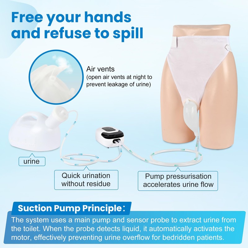 - 【Effortless Cleaning & Quiet Operation】Intelligent Electric Urinal The detachable pump and smooth inner tubing allow quick cleaning with water or detergent. Plus, Intelligent Electric Urinal the ultra-quiet motor ensures discreet use