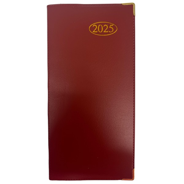 2025 Slim Week To View PVC Leather Effect Diary with Gold Metal Corners - Red