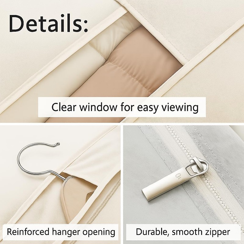 - ✅EASY TO USE, NO VACUUM NEEDED: Simply place clothes inside, zip it up, and compress—no vacuum required. The self-compression zipper reduces bulk, while the smooth-gliding, durable zipper ensures easy, reliable use. Fits all hanger types for effortless closet integration