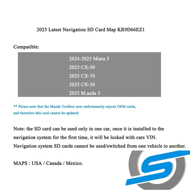 - Compatibility: This navigation sd gps map card compatible with 2024-2025 year mazda Miata 5, 2025 cx50/cx70/cx30,2025 mazda 3. Please check the compatible models and years before making a purchase to avoid buying the wrong item.