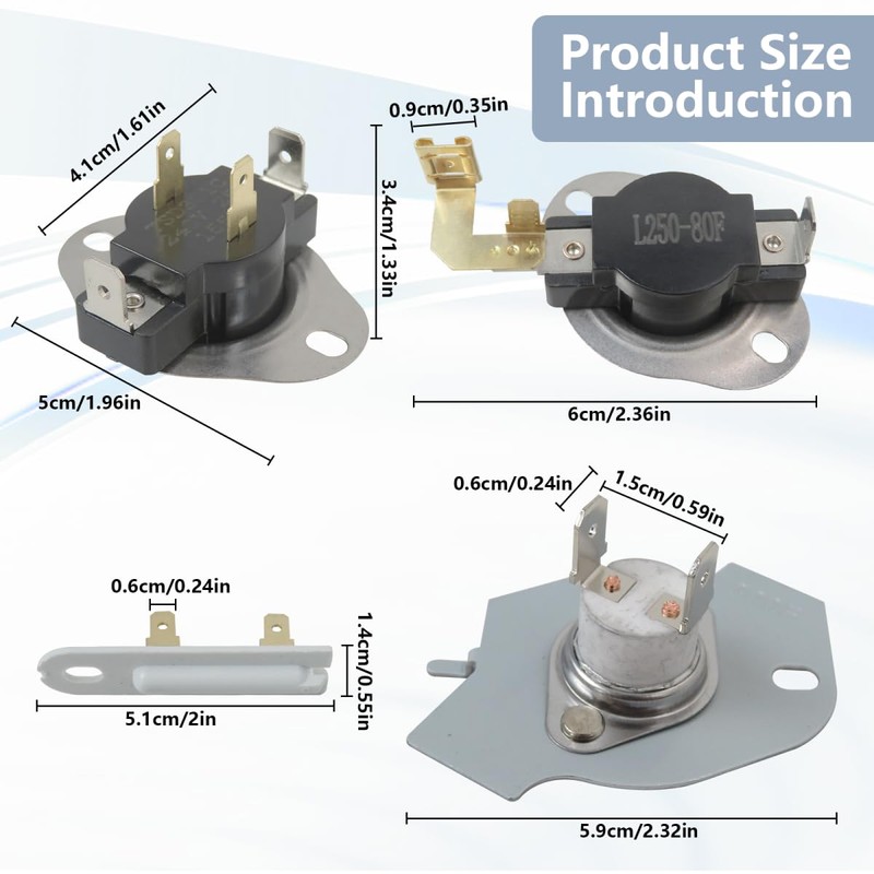 - 【Package Include】 1×3387134 cycling thermostat; 1×3977767 high-limit thermostat; 1×3977393 dryer thermal cut-off switch; 2×3392519 dryer thermal fuse. It's more cost-effective to buy 5 pieces together