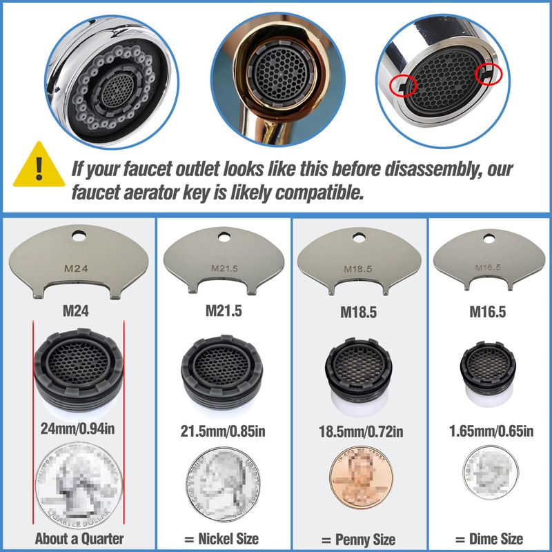 - 🔧 Universal Fit Aerator Key – Works with most standard plug-in aerators (M16.5, M18.5, M21.5, M24, Junior, Regular) — a go-to plumber tool and must-have for any home.