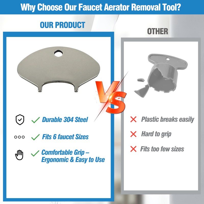 - 🛠️ Simple & User-Friendly Aerator Removal Tool – Ergonomic handle makes removing even the toughest aerators easy — no extra tools or pros required!